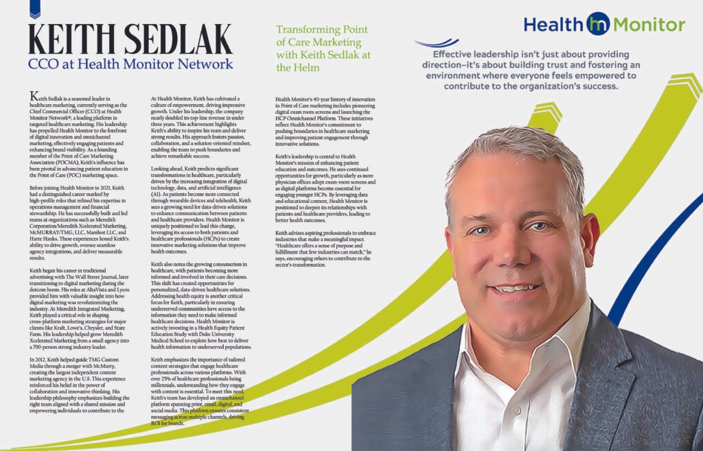 Keith Sedlak is a seasoned leader in healthcare marketing, currently serving as the Chief Commercial Officer (CCO) at Health Monitor Network®, a leading platform in targeted healthcare marketing. His leadership has propelled Health Monitor to the forefront of digital innovation and omnichannel marketing, effectively engaging patients and enhancing brand visibility. As a founding member of the Point of Care Marketing Association (POCMA), Keith’s influence has been pivotal in advancing patient education in the Point of Care (POC) marketing space.